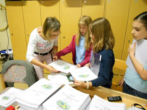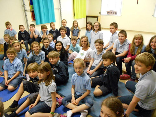 Am 29.4. fand nun der Höhepunkt unseres "Schubadu"- Leseprojektes mit Autorin Inge Fiedler statt. Zu Schulbeginn besuchte uns Inge Fiedler in der Schule und stellte uns ihre "Schubadu" - Geschichten vor. Schubadu ist ein pfiffiges, abenteuerlustiges Waldmännlein, das stets höflich ist und viele gute Freunde, nämlich die Waldtiere hat. Inge Fiedler schrieb für alle 4 Schulstufen jeweils 5 verschiedene "Schubadu"-Geschichten, die gebunden 4 Bände darstellten. Auf jedem Band war unser Schullogo, ein Klassenfoto und die Unterschriften der Autorin, der Schulleiterin und der Klassenlehrerin zu sehen. Der Sinn dieses Projektes bestand darin, die Leselust mit der Kreativität und dem Ausleben der Phantasie zu fördern. Auf der linken Seite des Buches stand die Geschichte, auf der rechten Seite zeichneten die Kinder das Gelesene. So entstand das ganz persönliche "Schubadu"- Buch. Zur Abrundung des Projektes kam am 29.4. nochmals Inge Fiedler zu Besuch. Sie las den Kindern eine Geschichte vor, bestaunte die tollen Werke der Kinder und signierte jedes Buch. Auch Radio Maria kam zu uns, befragte die Kinder, die Autorin und die Schulleiterin zu diesem Projekt. Wir freuen uns schon, wenn der Beitrag im Herbst gesendet wird.