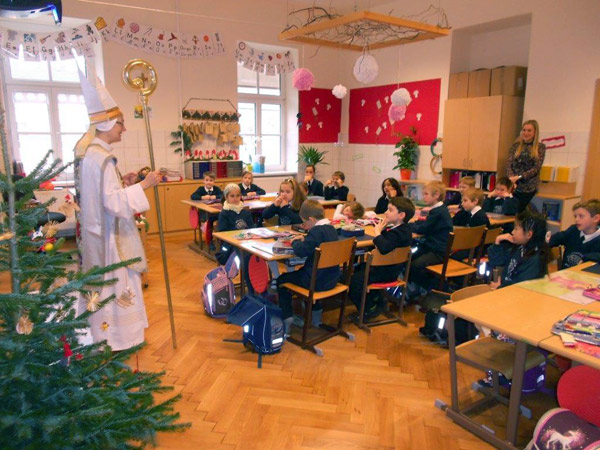 Ende November übergaben einige Franziskuskinder im Rahmen einer kleinen Andacht den Schulschwestern das Herbergsbild, das heuer im Advent wieder von Pfarre zu Pfarre im Dekanat 3 wandern wird. Bei unserer Rorate, am 3.12. um 7 Uhr, konnten wir es nochmals in der Pfarre Erdberg bewundern. Auch der Nikolaus besuchte uns und brachte uns allen Süßes, aber auch Gesundes! Ein herzliches Dankeschön an alle "Helferleins"!