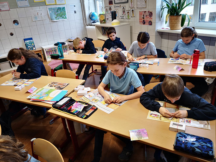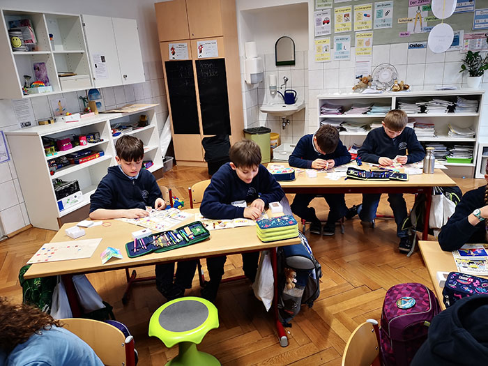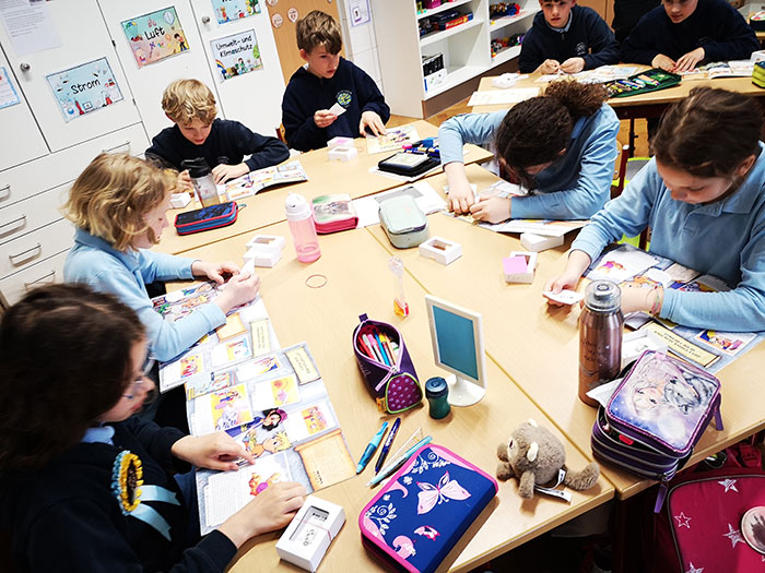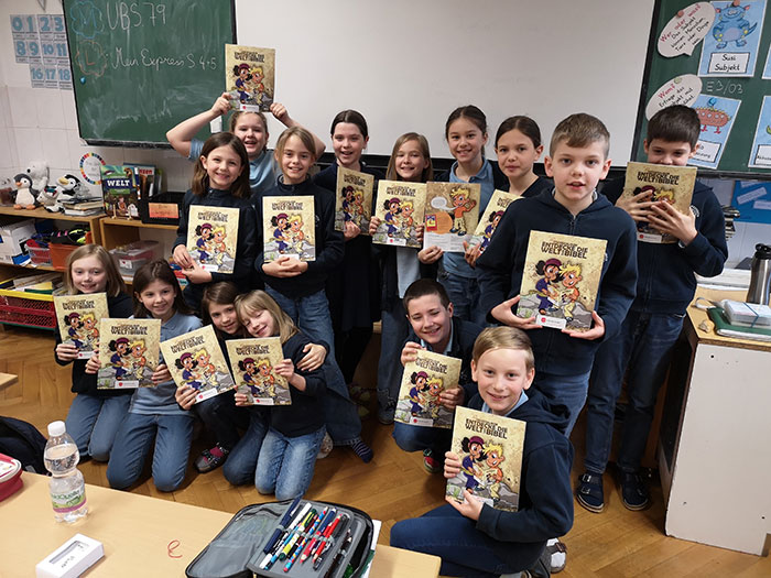 Die Kinder der 4. Klassen freuen sich über das Bibelstickeralbum